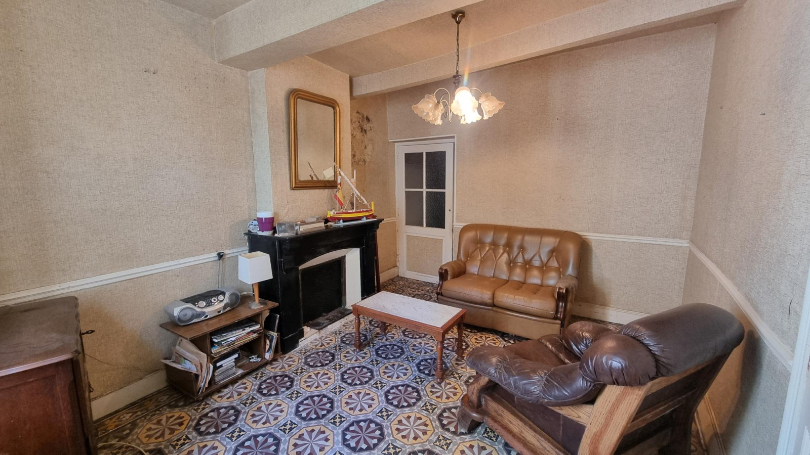 Dès l’entrée, vous serez accueilli par un joli couloir qui distribue harmonieusement les espaces de vie du rez-de-chaussée, comprenant une cuisine accompagnée de son arrière-cuisine ainsi qu’un salon chaleureux, sublimé par de beaux carreaux de ciment et une cheminée qui confèrent à l’ensemble un cachet indéniable.